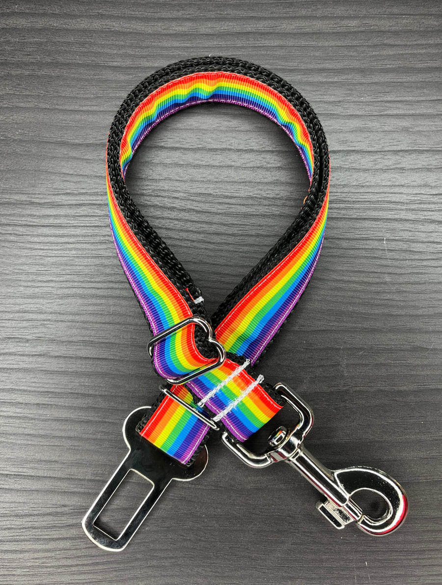 Our seatbelts come in many different patterns to fit each individual style. The seatbelts all come with a width of 1 inch and extend from approximately 14 inches long - 26 inches long, so they are perfect for any size pooch.