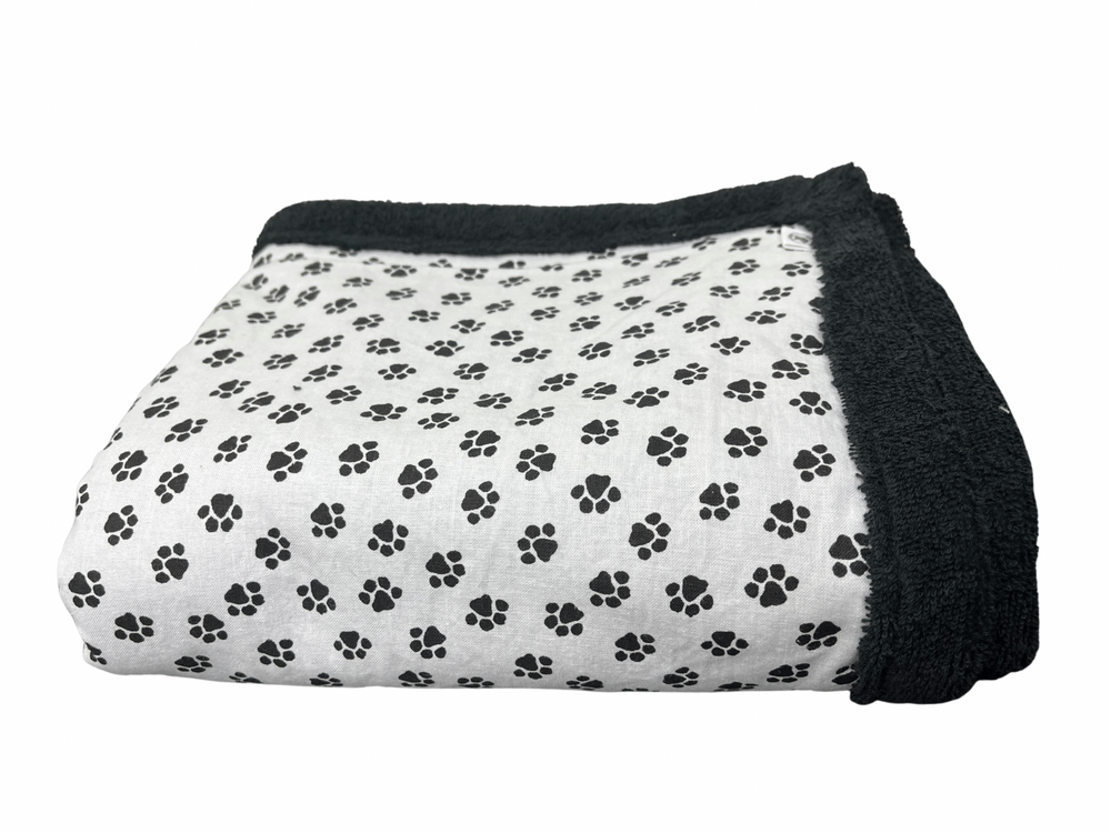 Our towels are made with a 100% cotton front and cotton terry cloth as the backing.