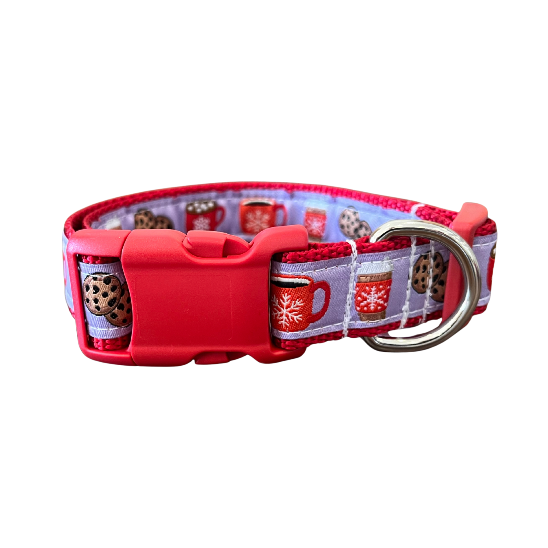 Pattern: Cookies, hot cocoa, and coffee on a purple background