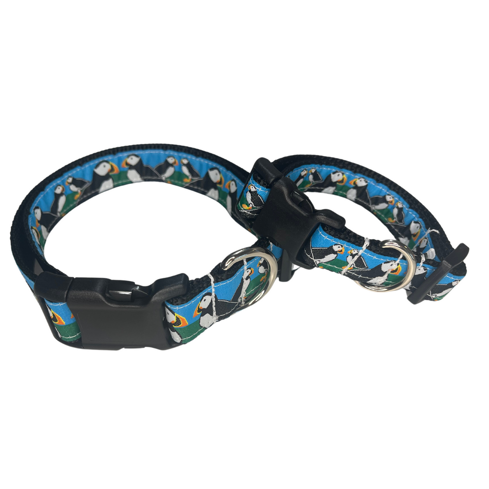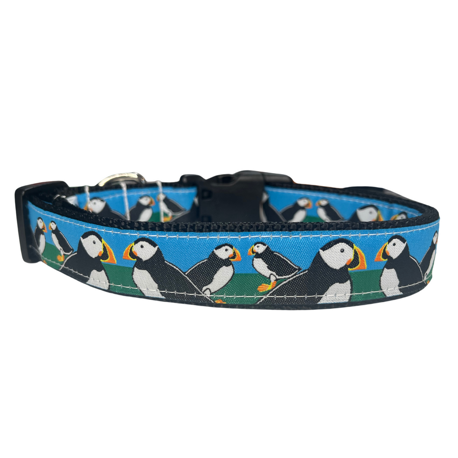 Did you know Puffins come to Maine around April to August to breed? The best time to see them is in June and July, and there are tours that you can take to see them. Puffins are one of our favorite birds, along side penguins, so we decided to make a collar with them on it!