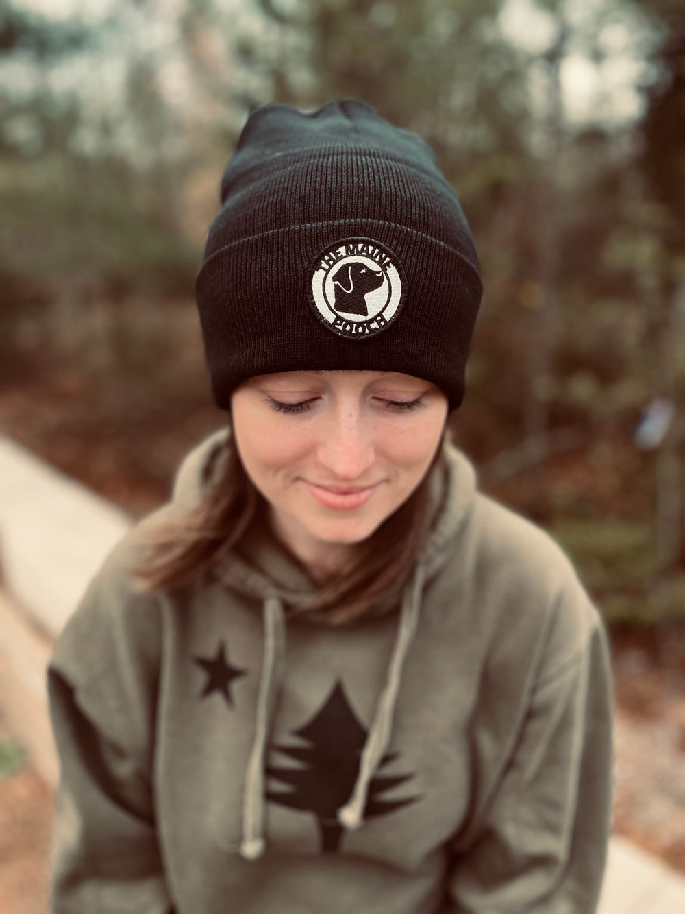 All beanies are 100% acrylic except the Heather Grey beanies, which are 62/38 acrylic/polyester. All patches are sewn onto the hat.