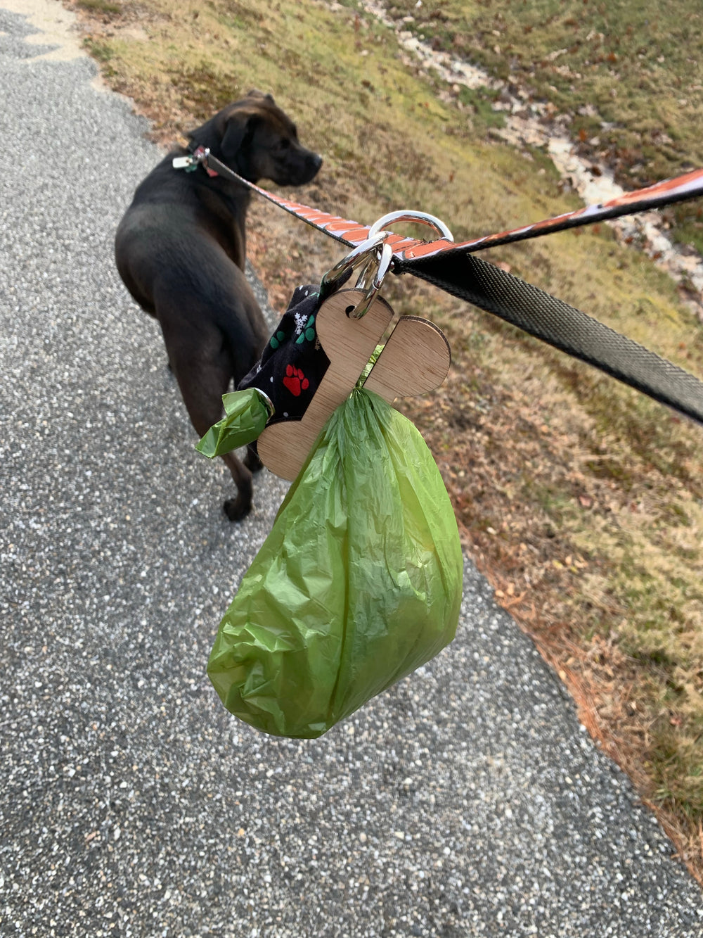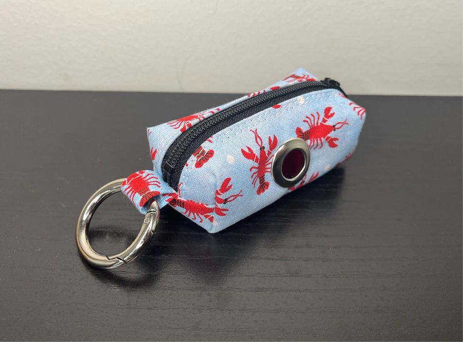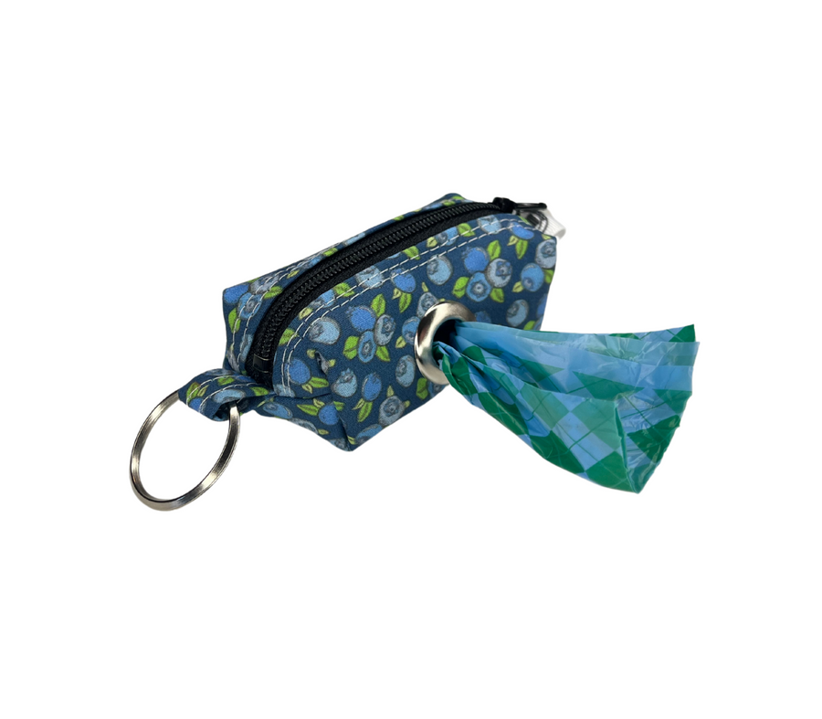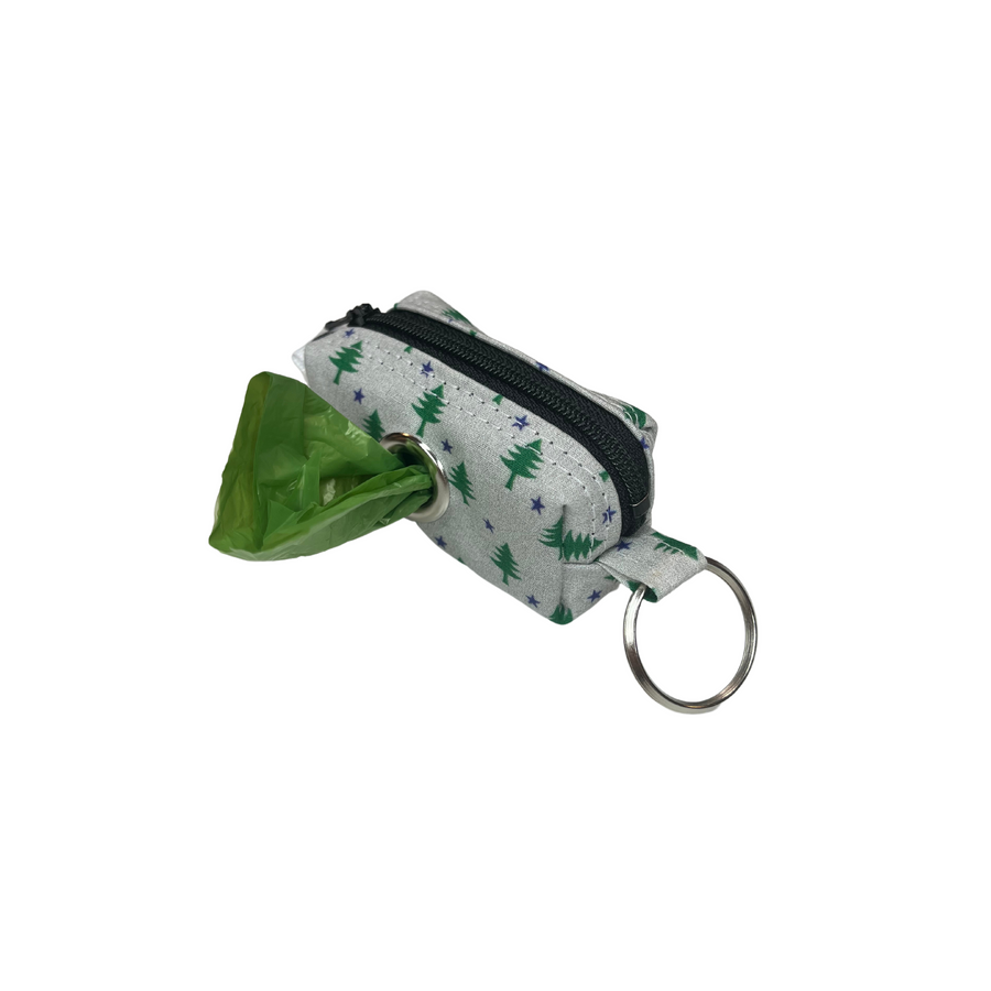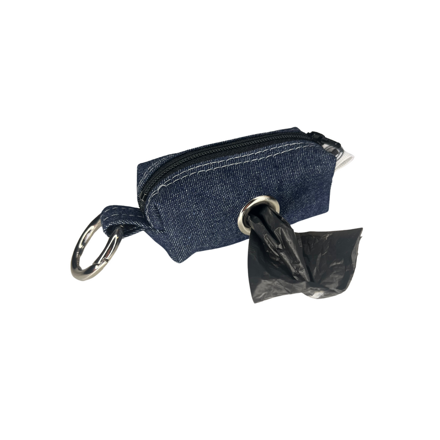 All poo bag dispensers have a zipper to keep the roll of bags secure and a round carabiner clip for easy attachment to a leash.