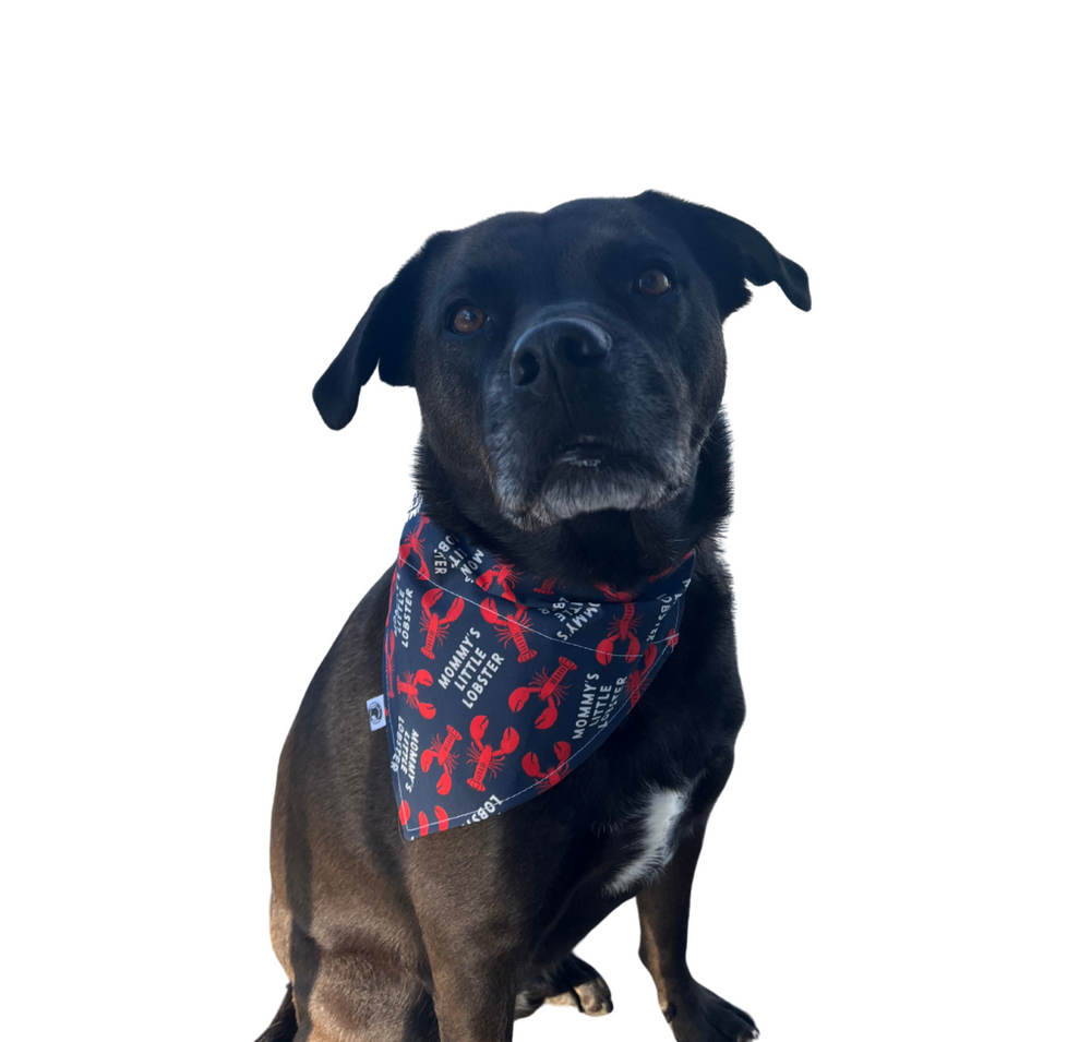 Pattern: "Mommy's Little Lobster" and lobsters on a dark blue background.