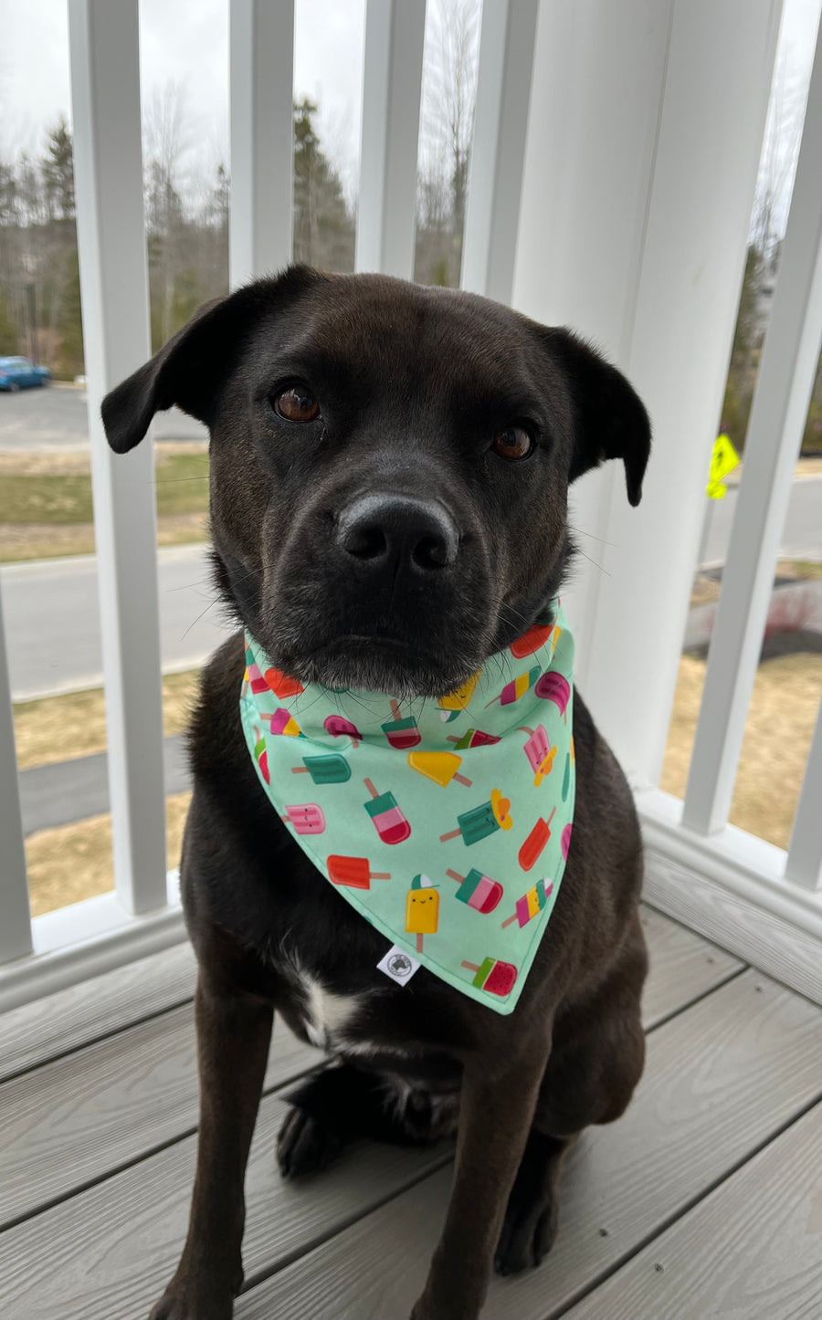 Pattern: Yellow, red, pink, orange, and green popsicles on a light teal background.