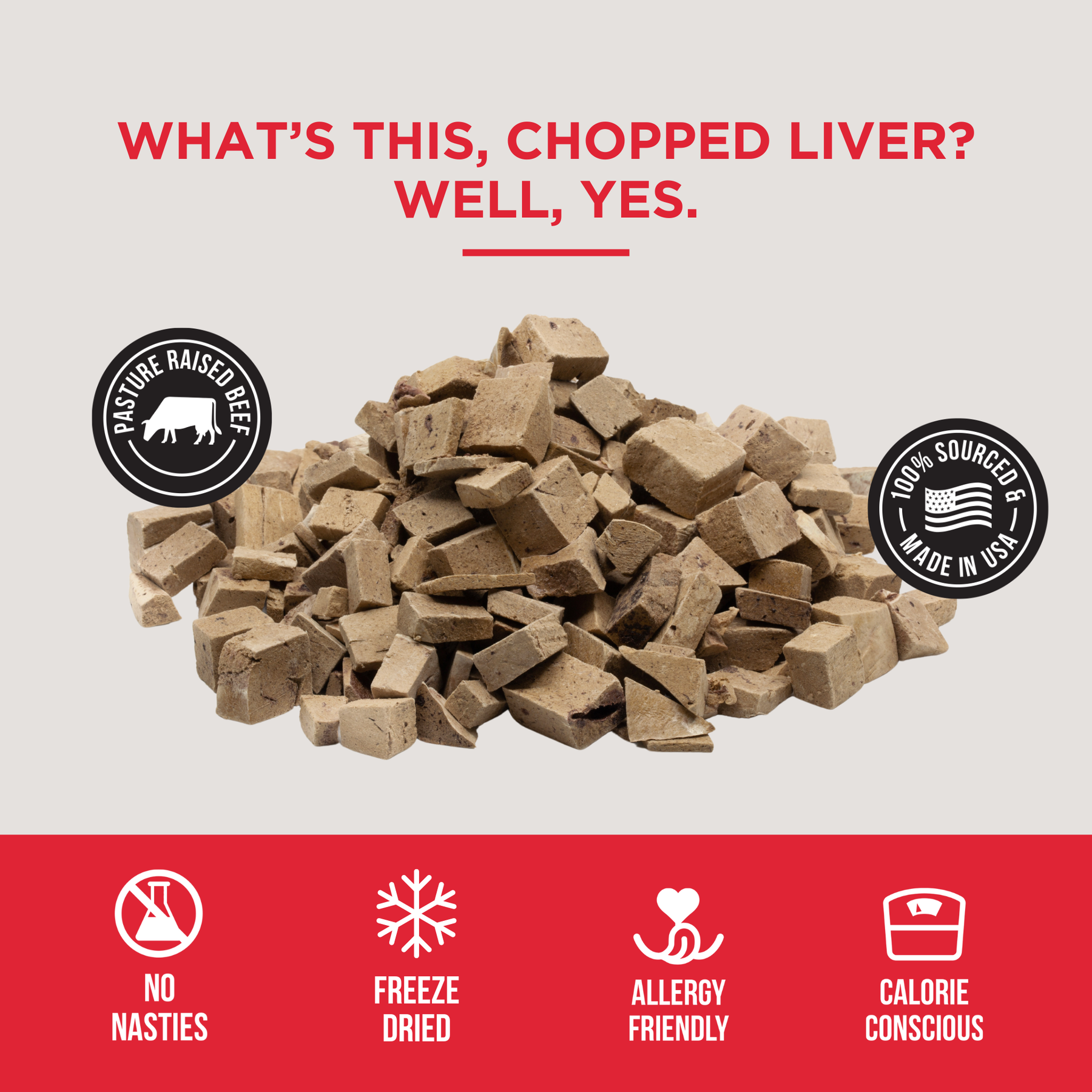 While we have all the seals, certifications, and promises as the other guys, what truly makes our Freeze Dried Beef Liver different is this: our state of the art facility freeze dries raw, unprocessed beef liver at its peak nutritional moment making our beef liver closer to nature than the other brands with nothing added, nothing removed & as nutrient dense as physically possible.
