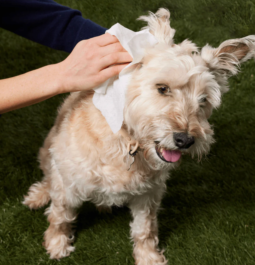 These gentle Grooming Wipes are a convenient way to clean & refresh your pup on those in-between-bath days. Did your pup have an especially fun time outside? Wipe away dirt & grime from paws, skin, fur, and bums. Stinky face folds or wrinkles? Grooming Wipes have your back! These extra-large wipes are the perfect way to keep Scout fresh & fly.