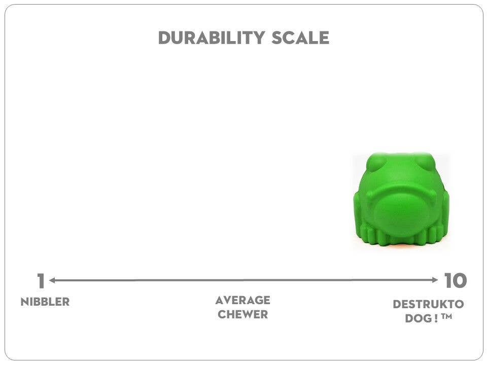DURABLE CHEW TOY: The Bull Frog Treat Dispenser is designed to withstand the abuse of most "power chewer" dogs.